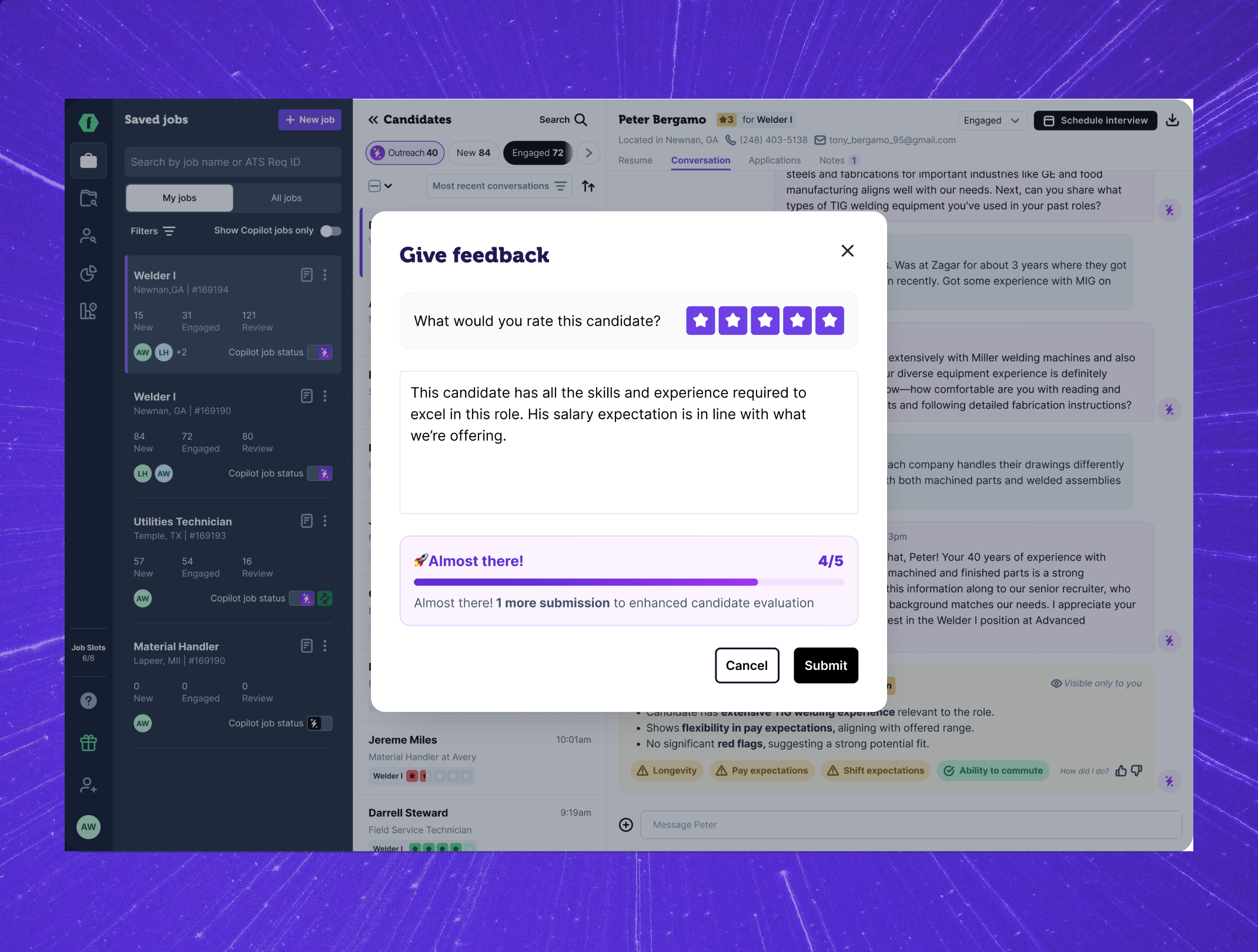 These enhancements help your AI recruiters become more valuable over time, understanding your unique requirements and delivering increasingly precise results as they work with your team.